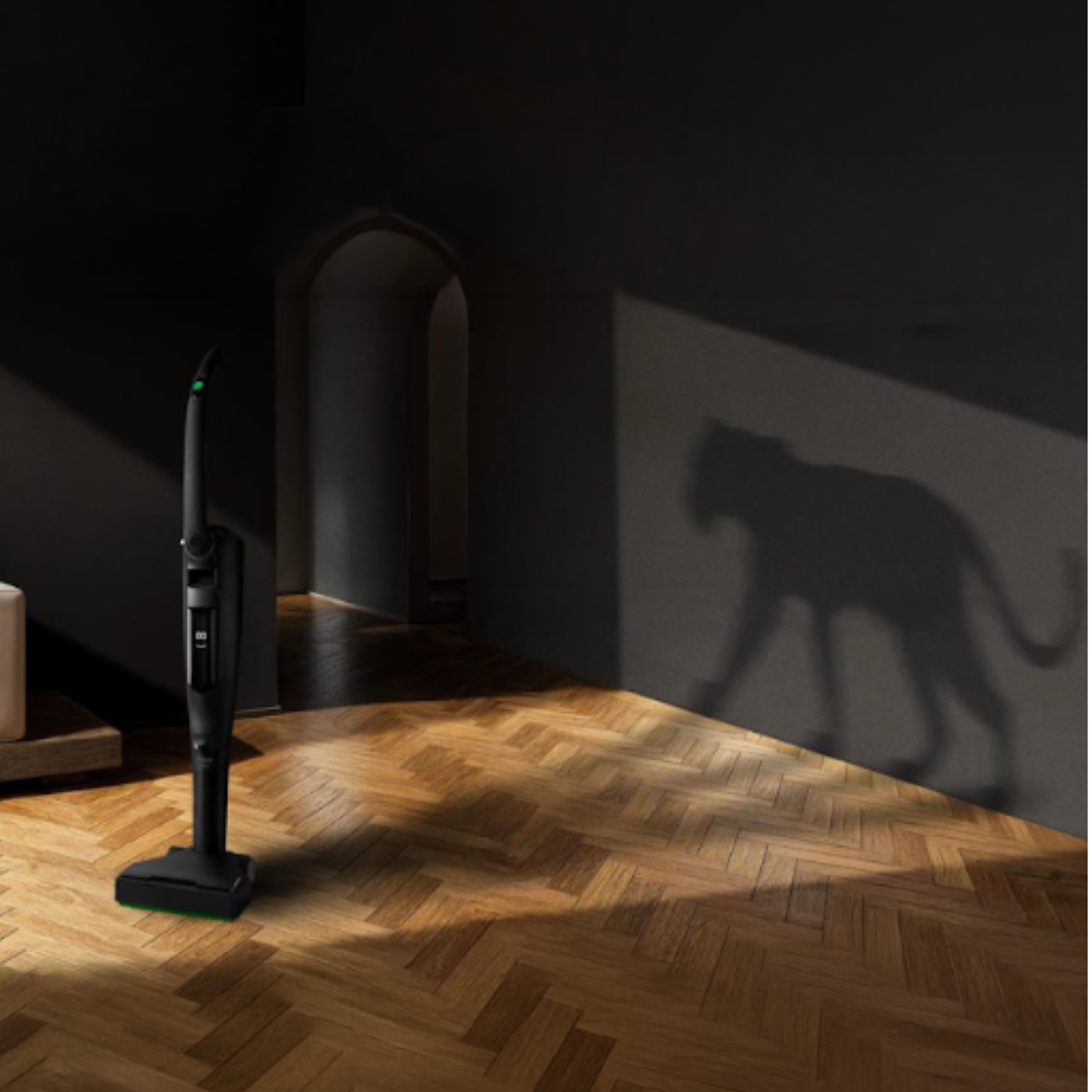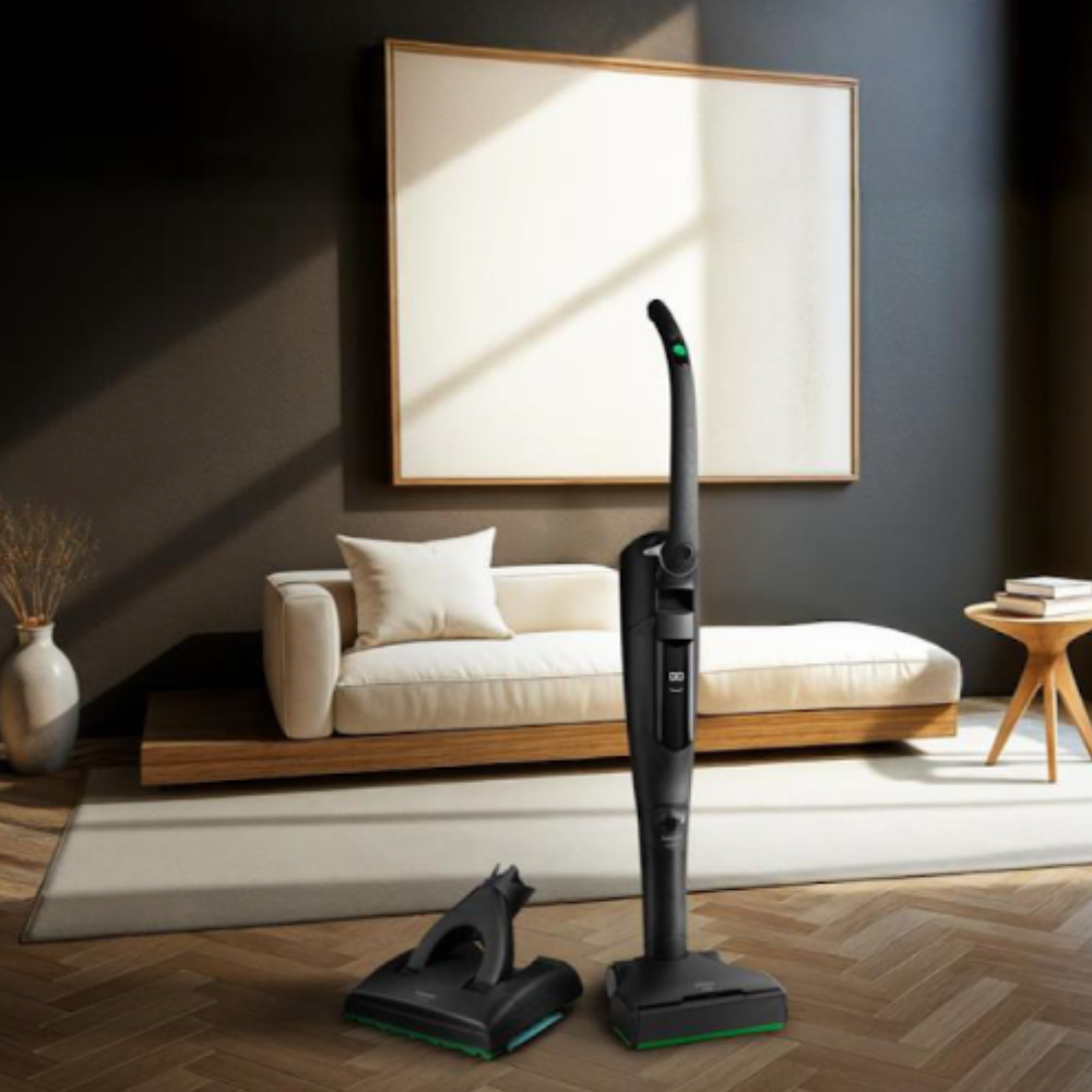 La VK7 tiene función start and stop, ideal para pausar y seguir limpiando cuando quieras. Además, con su función parking, se mantiene de pie sola: no necesitas colgarla en la pared.
