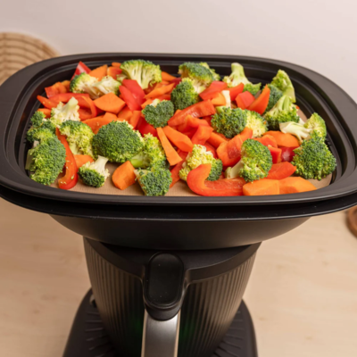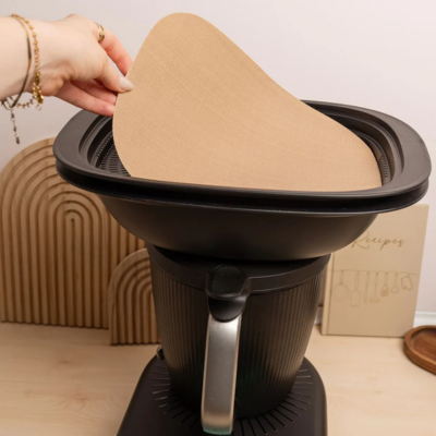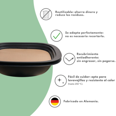 Olvídate de cortar papel mantequilla cada vez que usas el Varoma: esta lámina reutilizable está diseñada a medida para el Varoma del TM7, encaja a la perfección y simplifica tu rutina desde el primer uso.