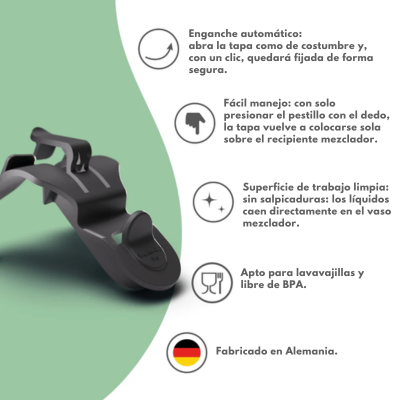 El Soporte de Tapa resuelve uno de los dolores más comunes al cocinar con Thermomix TM6: ¿dónde dejar la tapa sin ensuciar la encimera?