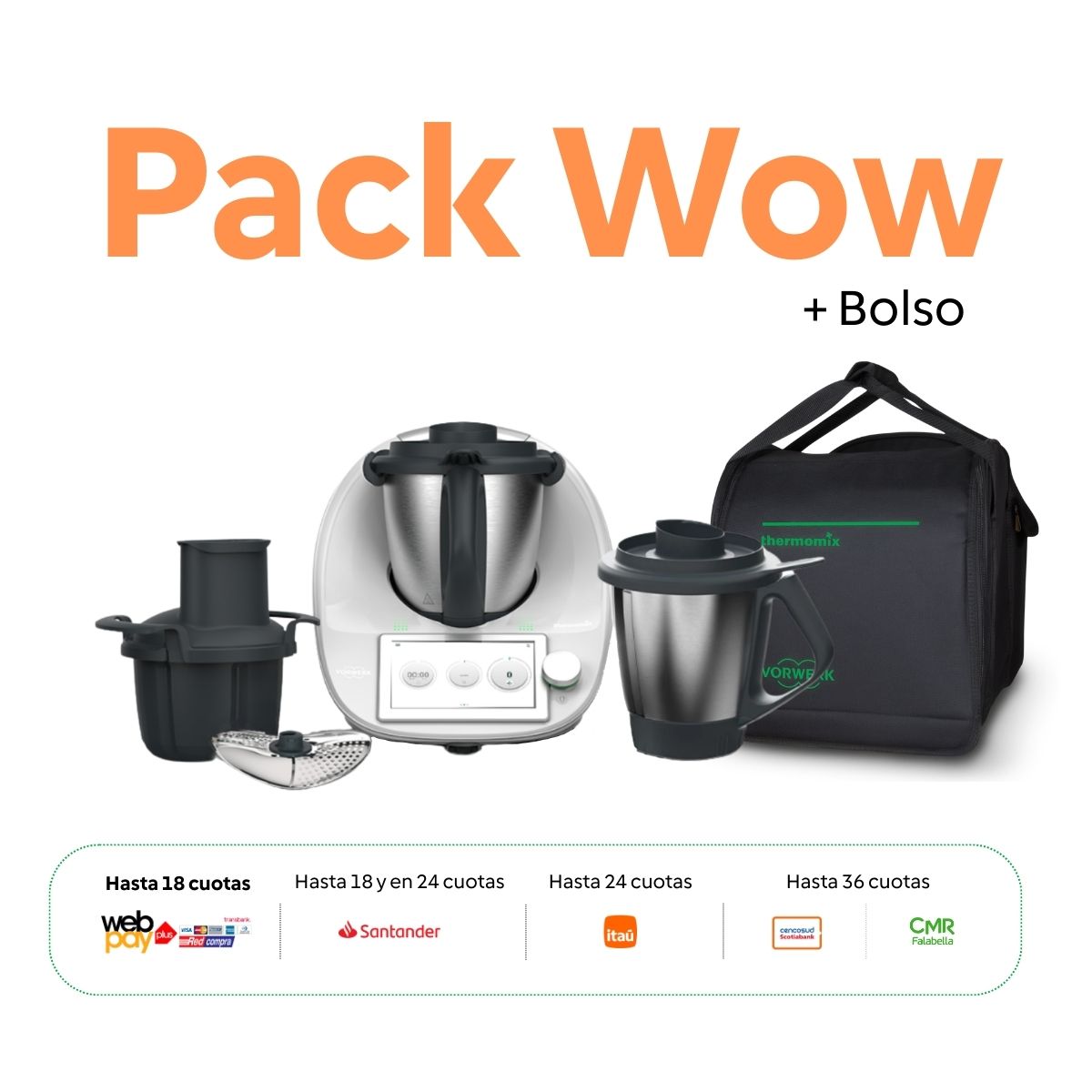 Esta promoción incluye: Thermomix® TM6 (con vaso original) + Vaso adicional Thermomix® + Cutter Plus + Pelador y Cubrecuchillas + Bolso de Transporte TM5/TM6