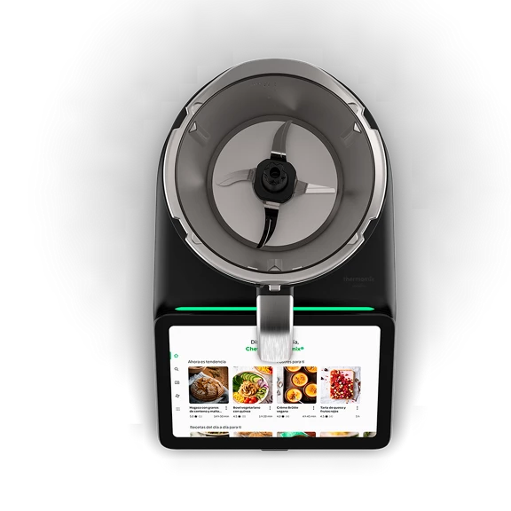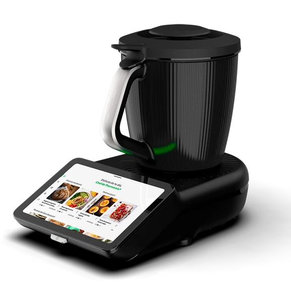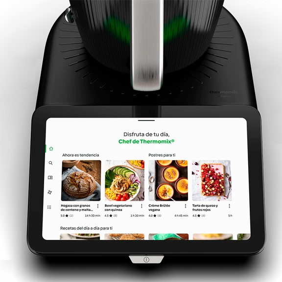 Su elegante diseño en negro y su pantalla multitáctil de 10” te invitan a vivir una experiencia inmersiva con Cookidoo®, donde encontrarás más de 100.000 recetas en más de 20 idiomas con resultados garantizados.